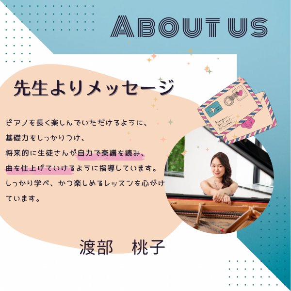 #先生が30代以下#女性先生#体験レッスン◎#指導年数5年以上#発表会◎:不定期・アットホーム#オンライン可#個人レッスン中心